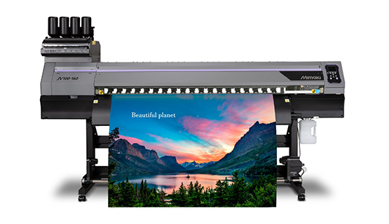 Impresora híbrida de gran formato que puede imprimir en materiales rígidos y flexibles, utilizando tecnología de curado UV